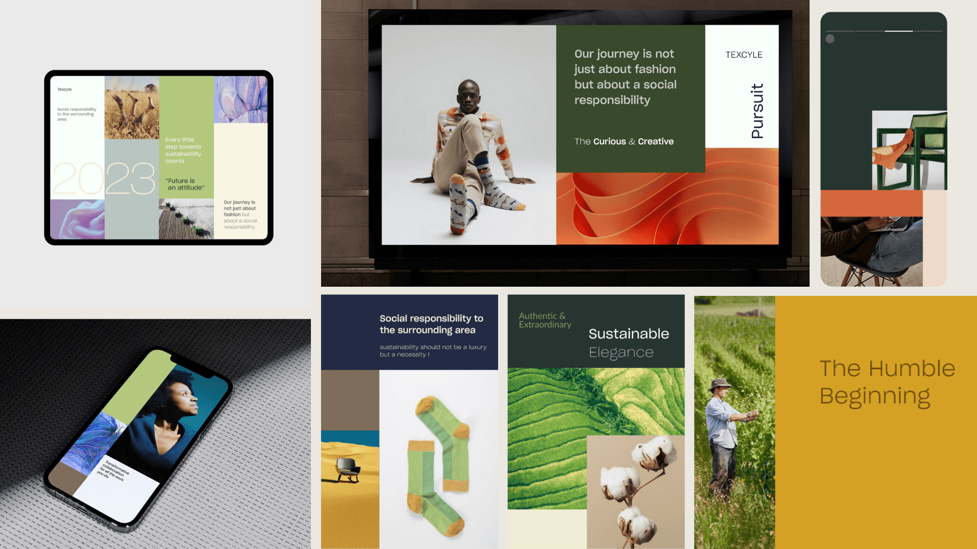 I have conceptualised a brand system for TexCycle through Sustainable Gridscape, where the fusion of rectangles and squares not only speaks to the structured world of fashion but also echoes the intricate landscapes of our green planet. This design system draws inspiration from the ethos of "WELCOME TO OUR CIRCULAR WORLD," emphasizing that sustainability is not just a luxury but a necessity.